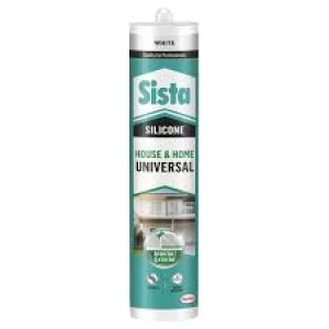 A white silicone sealant product from the SISTA brand that comes with an application kit. This type of sealant is commonly used for sealing joints, gaps, and seams in various construction, plumbing, and automotive applications to prevent leaks and provide a waterproof barrier.