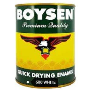 A black enamel paint product manufactured by Sherwin Williams that dries quickly and is available in gallon-sized containers. This type of paint is commonly used for various applications, including metal surfaces, trim work, and other projects where a durable and glossy finish is desired.