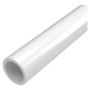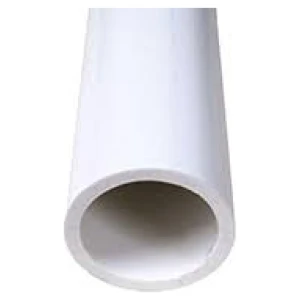 PVC Pipe. It is the plastic pipe commonly used for plumbing and drainage.