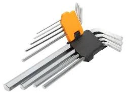 The 9-piece Hex Key Set (20049-Allen Set) is a collection of hexagonal-shaped wrenches in various sizes, made of durable materials like hardened steel or chrome vanadium. Each wrench features a hexagonal tip on one end, used for tightening or loosening hexagonal socket screws and bolts. The set comes in a compact case for convenient storage and organization.
