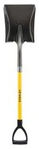 A sturdy shovel with a square-shaped head, suitable for heavy-duty digging and lifting tasks. These types of shovels are commonly used in construction, landscaping, agriculture, and other outdoor activities where durability and efficiency are essential.
