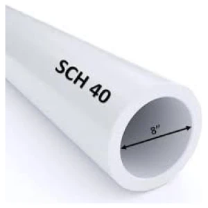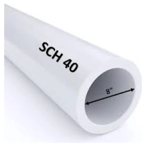 A PVC pipe that conforms to Schedule 40 standards, with a nominal diameter of 1 inch and a length of 5.8 meters. This type of pipe is commonly used in various plumbing and fluid transfer applications where moderate pressure and temperature conditions are expected.